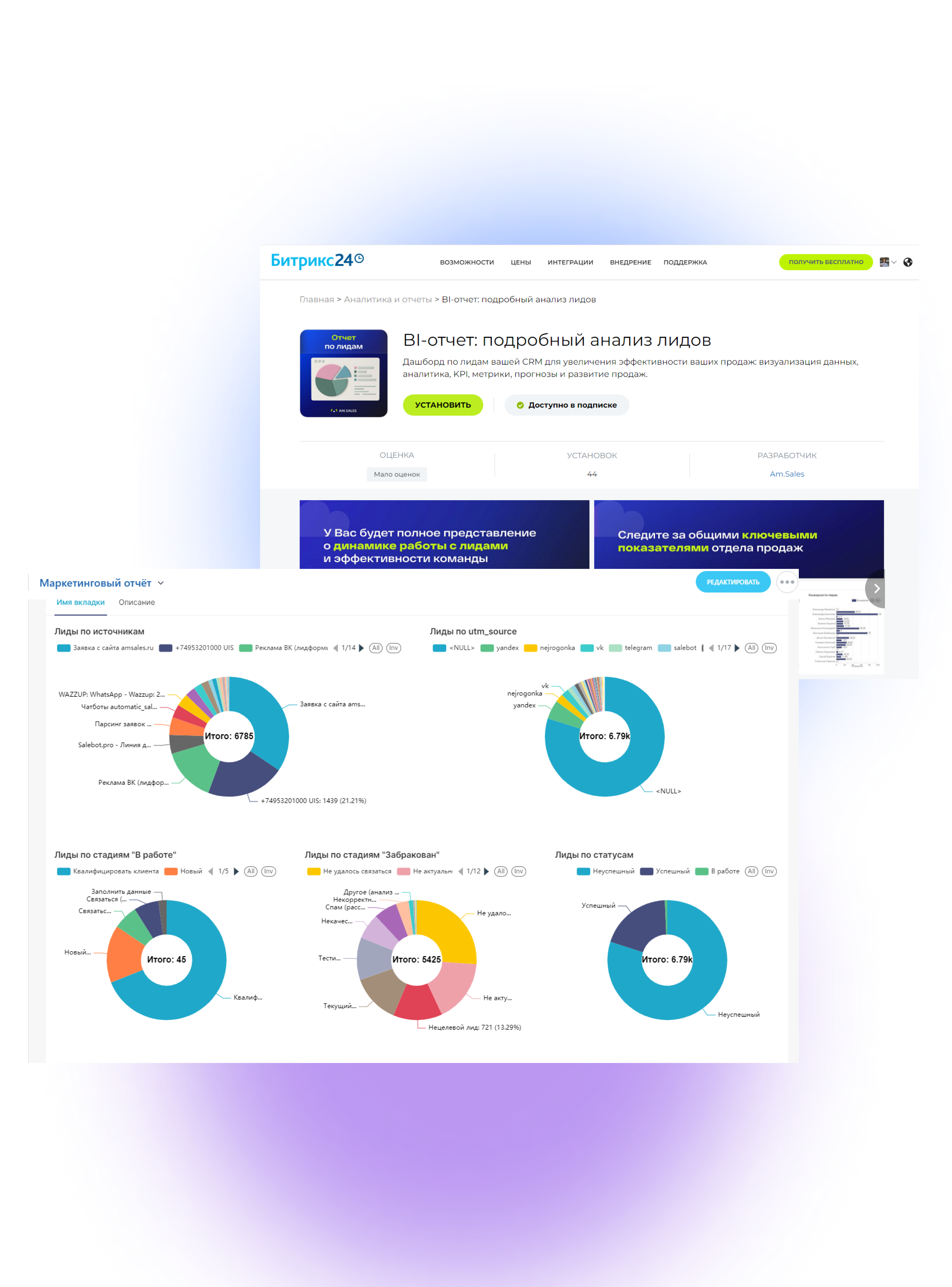 Не все бизнес-задачи и желания в доработке решаются штатными интеграциями. На помощь придет индивидуальная разработка приложений и дашбордов.